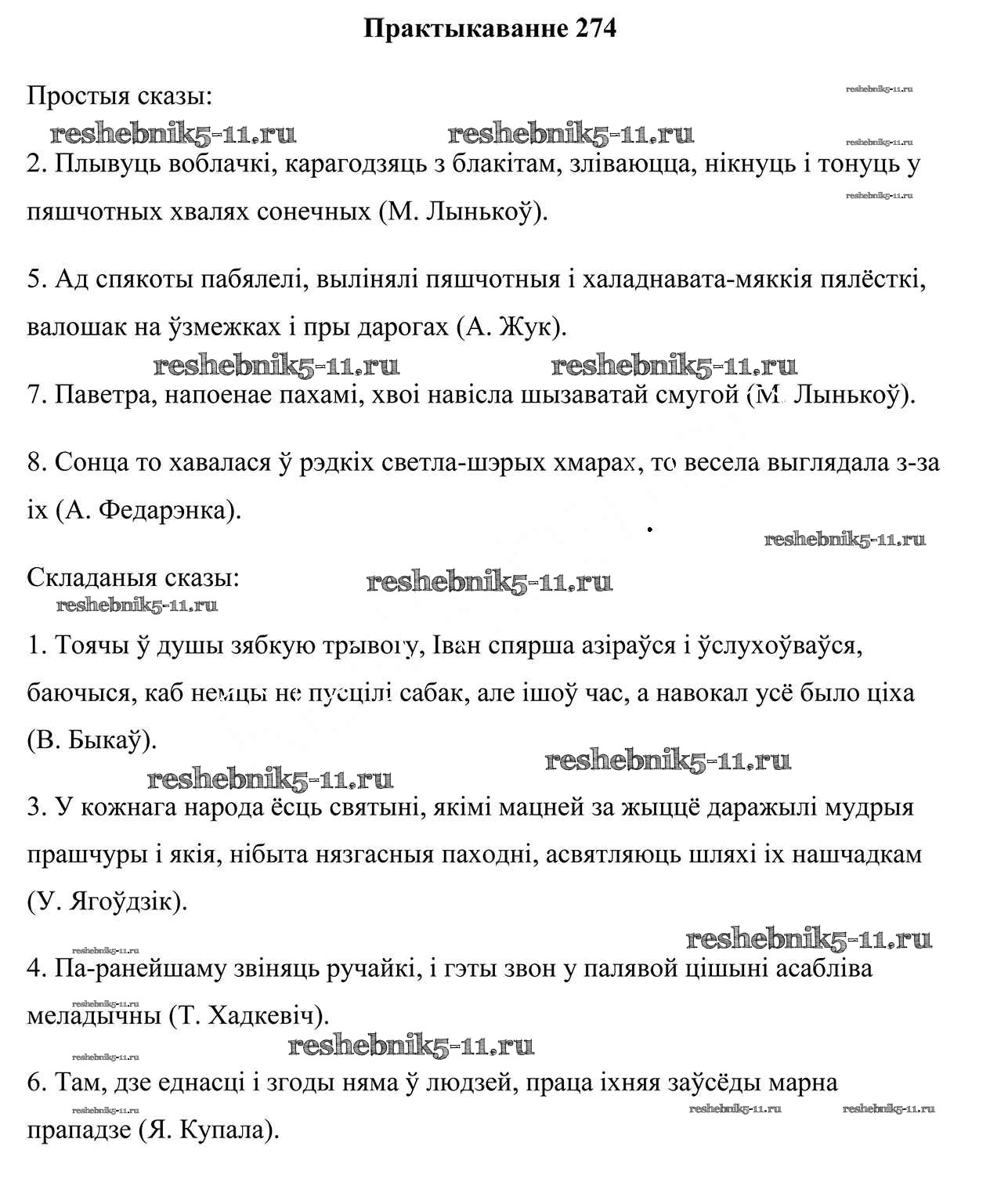 Готовая домашняя работа с ответами по Белорусскому языку за 9 класс Валочка, Васюковіч, Зелянко, Якуба, Байкова Учебник Национальный институт образования 2019 ФГОС - Практыкаванні 274
