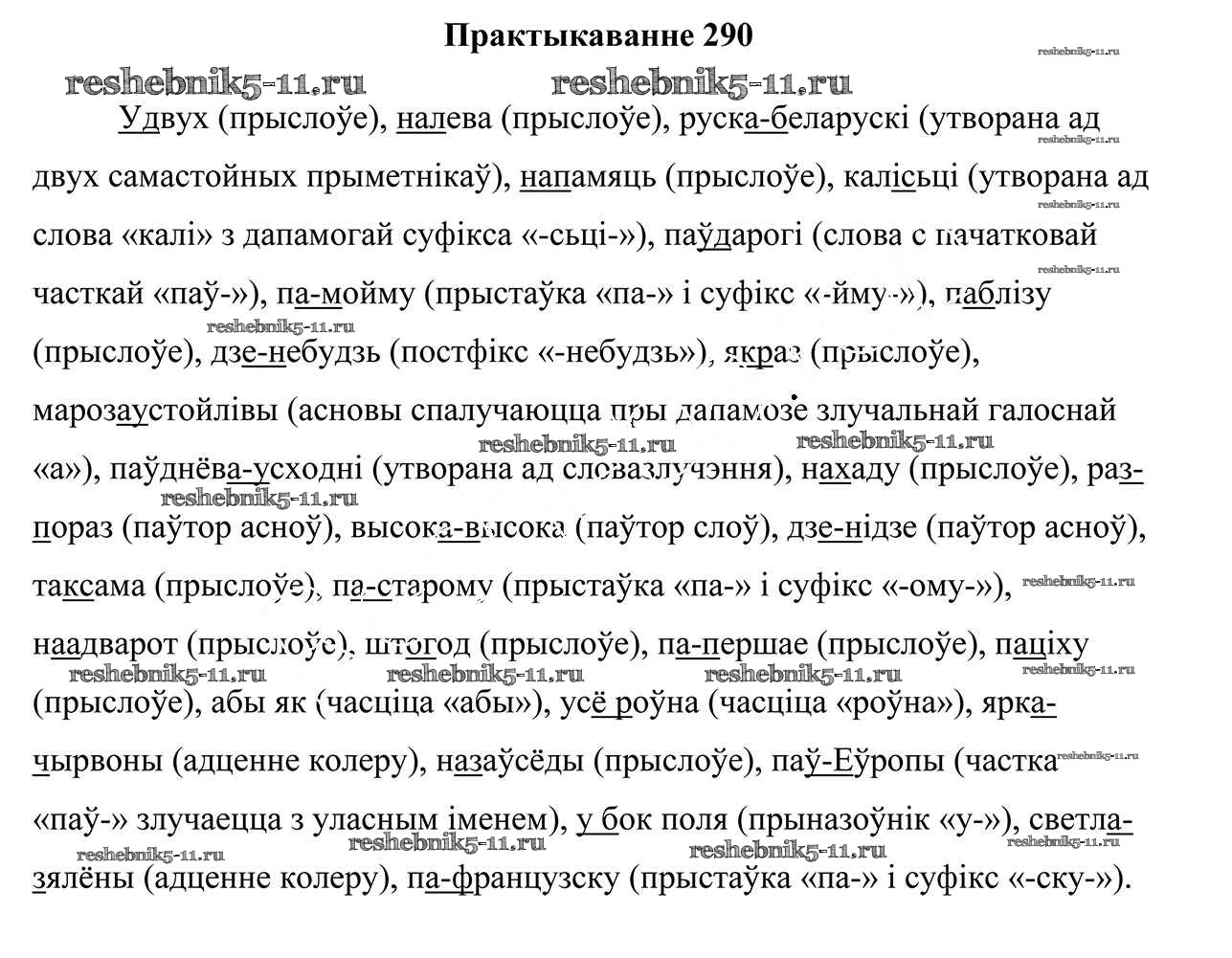 Готовая домашняя работа с ответами по Белорусскому языку за 9 класс Валочка, Васюковіч, Зелянко, Якуба, Байкова Учебник Национальный институт образования 2019 ФГОС - Практыкаванні 290