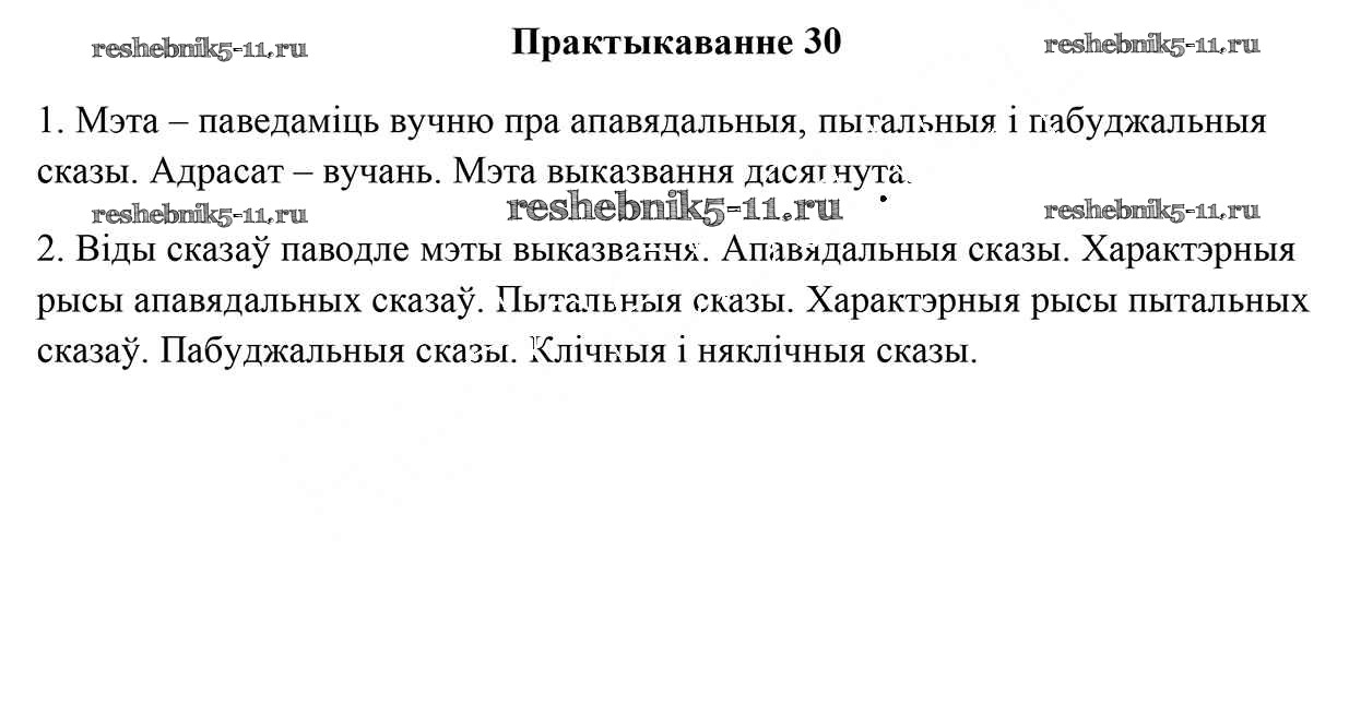 Готовая домашняя работа с ответами по Белорусскому языку за 9 класс Валочка, Васюковіч, Зелянко, Якуба, Байкова Учебник Национальный институт образования 2019 ФГОС - Практыкаванні 30