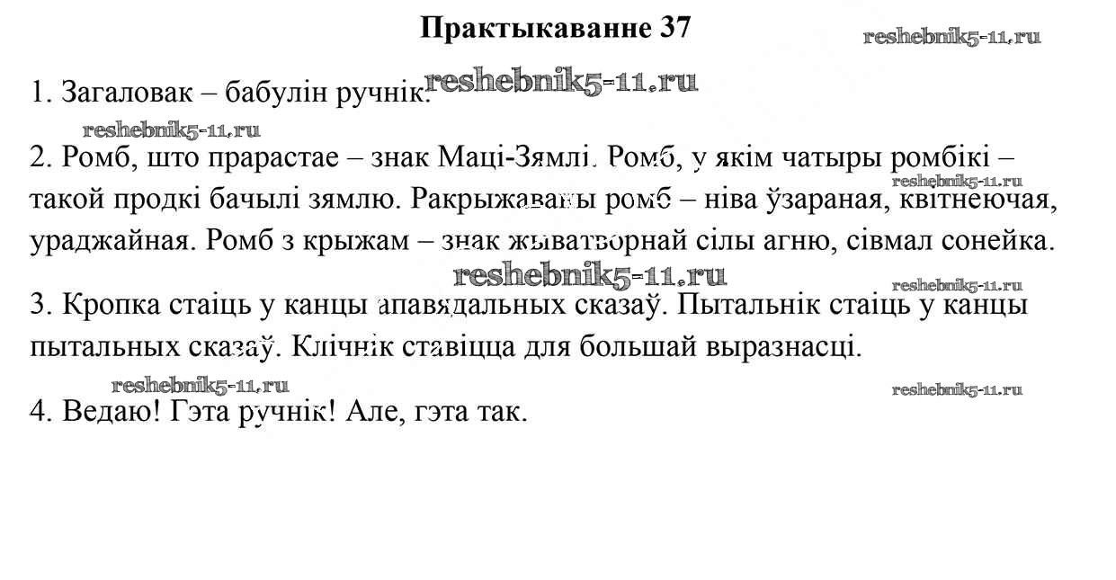 Готовая домашняя работа с ответами по Белорусскому языку за 9 класс Валочка, Васюковіч, Зелянко, Якуба, Байкова Учебник Национальный институт образования 2019 ФГОС - Практыкаванні 37