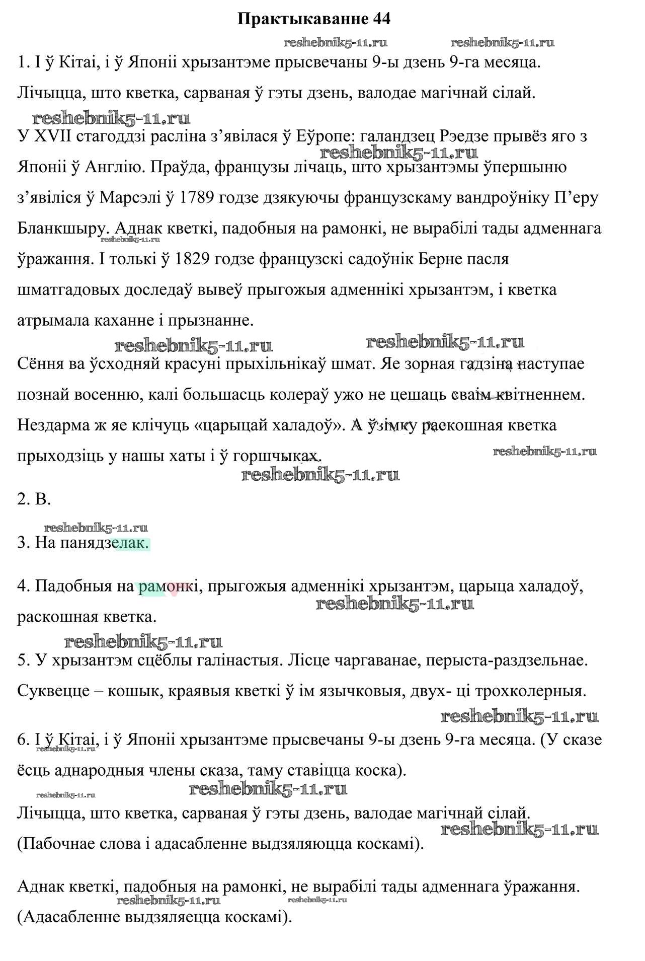 Готовая домашняя работа с ответами по Белорусскому языку за 9 класс Валочка, Васюковіч, Зелянко, Якуба, Байкова Учебник Национальный институт образования 2019 ФГОС - Практыкаванні 44