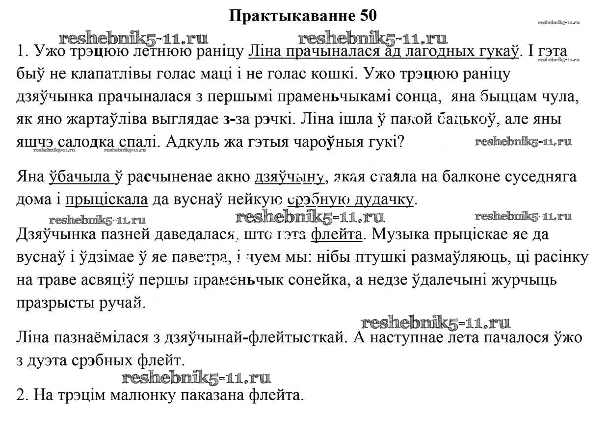 Готовая домашняя работа с ответами по Белорусскому языку за 9 класс Валочка, Васюковіч, Зелянко, Якуба, Байкова Учебник Национальный институт образования 2019 ФГОС - Практыкаванні 50