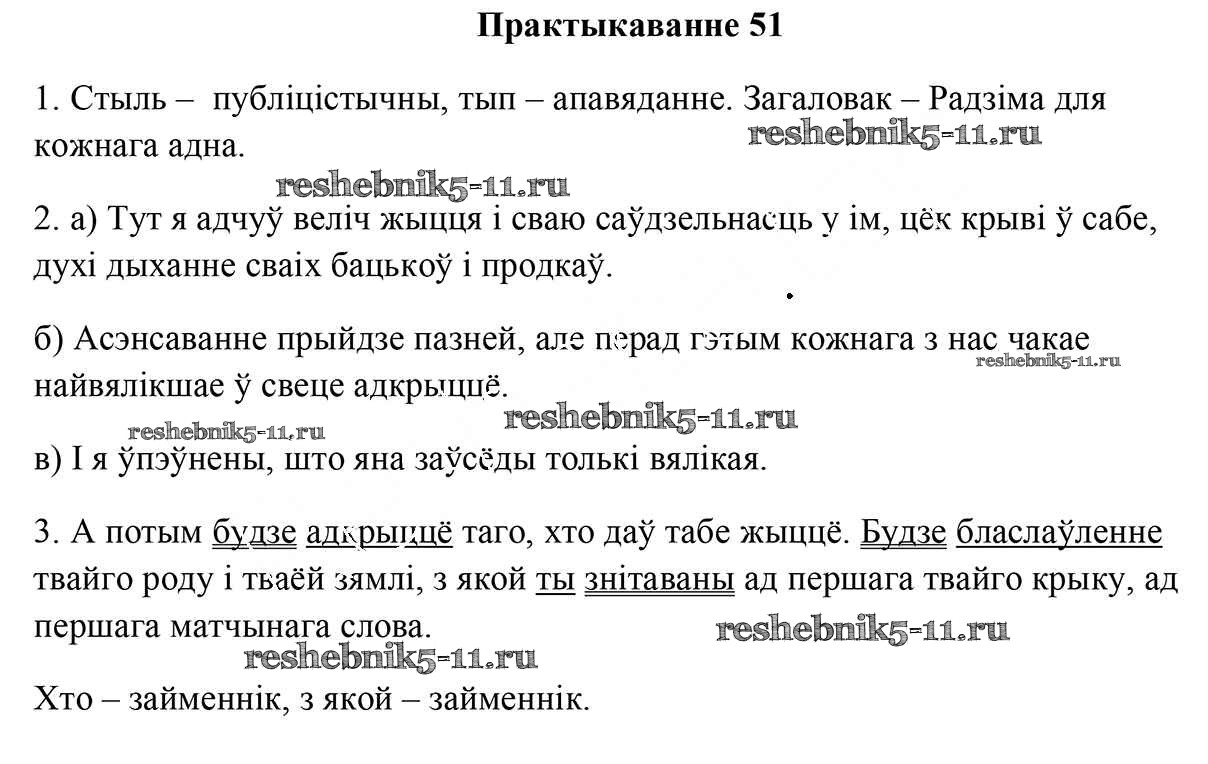 Готовая домашняя работа с ответами по Белорусскому языку за 9 класс Валочка, Васюковіч, Зелянко, Якуба, Байкова Учебник Национальный институт образования 2019 ФГОС - Практыкаванні 51