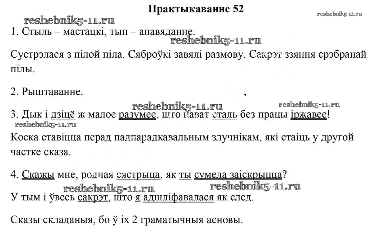 Готовая домашняя работа с ответами по Белорусскому языку за 9 класс Валочка, Васюковіч, Зелянко, Якуба, Байкова Учебник Национальный институт образования 2019 ФГОС - Практыкаванні 52