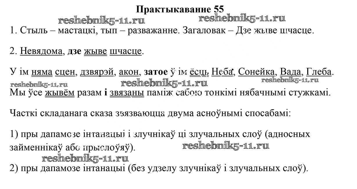 Готовая домашняя работа с ответами по Белорусскому языку за 9 класс Валочка, Васюковіч, Зелянко, Якуба, Байкова Учебник Национальный институт образования 2019 ФГОС - Практыкаванні 55
