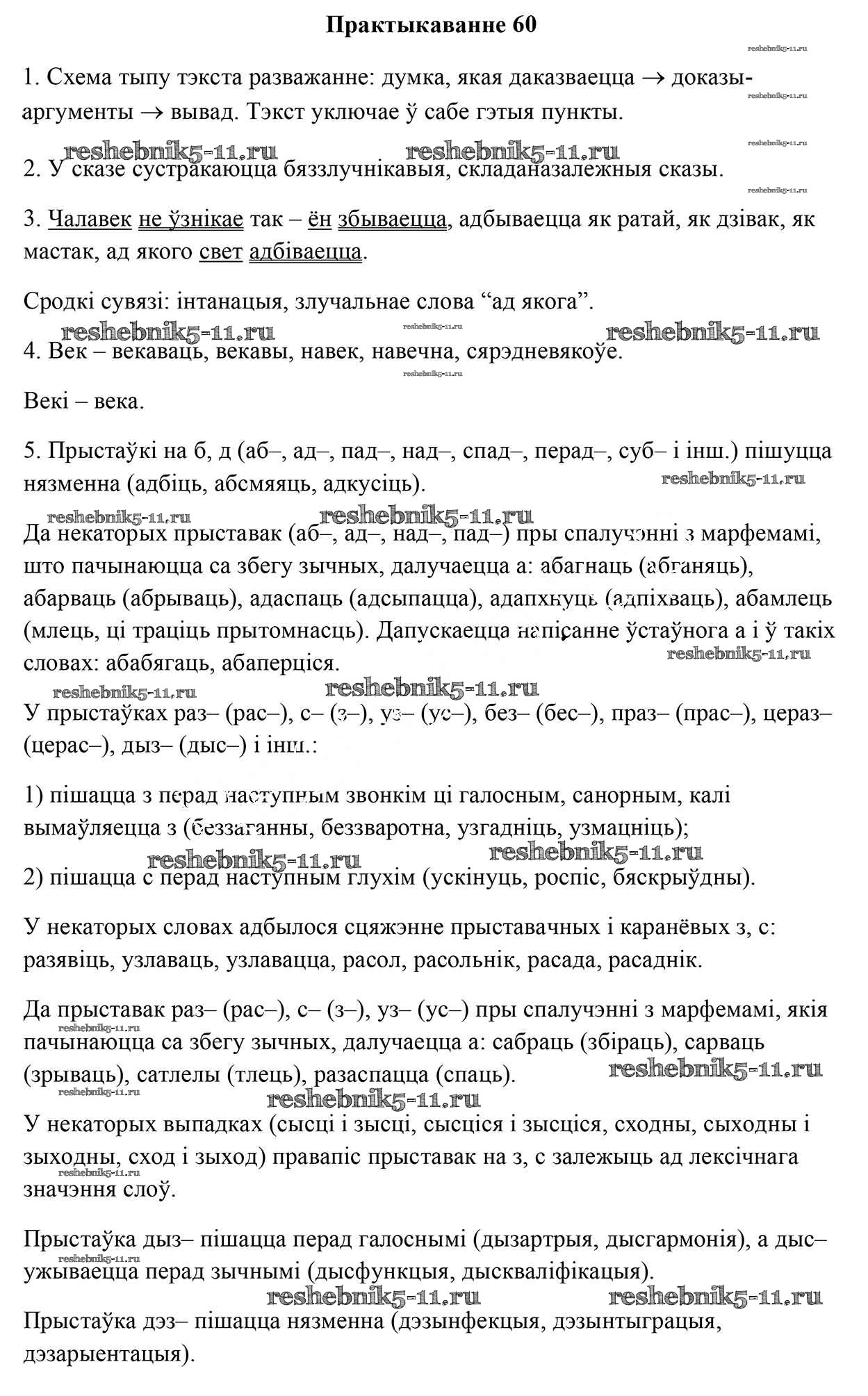 Готовая домашняя работа с ответами по Белорусскому языку за 9 класс Валочка, Васюковіч, Зелянко, Якуба, Байкова Учебник Национальный институт образования 2019 ФГОС - Практыкаванні 60