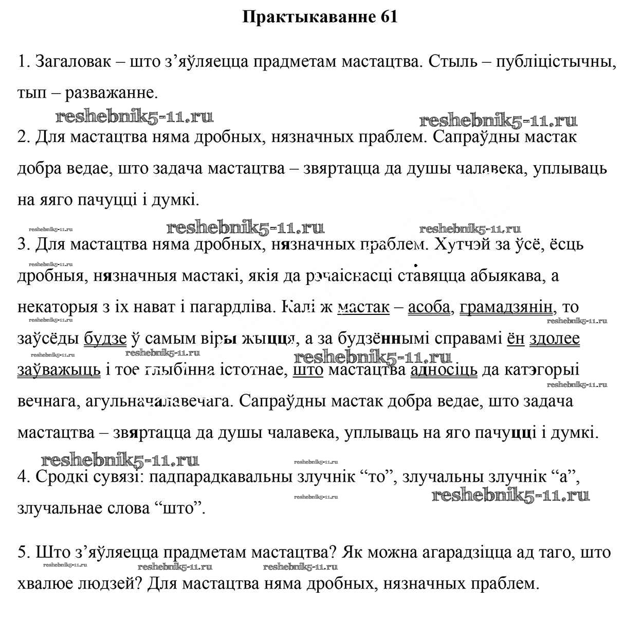 Готовая домашняя работа с ответами по Белорусскому языку за 9 класс Валочка, Васюковіч, Зелянко, Якуба, Байкова Учебник Национальный институт образования 2019 ФГОС - Практыкаванні 61