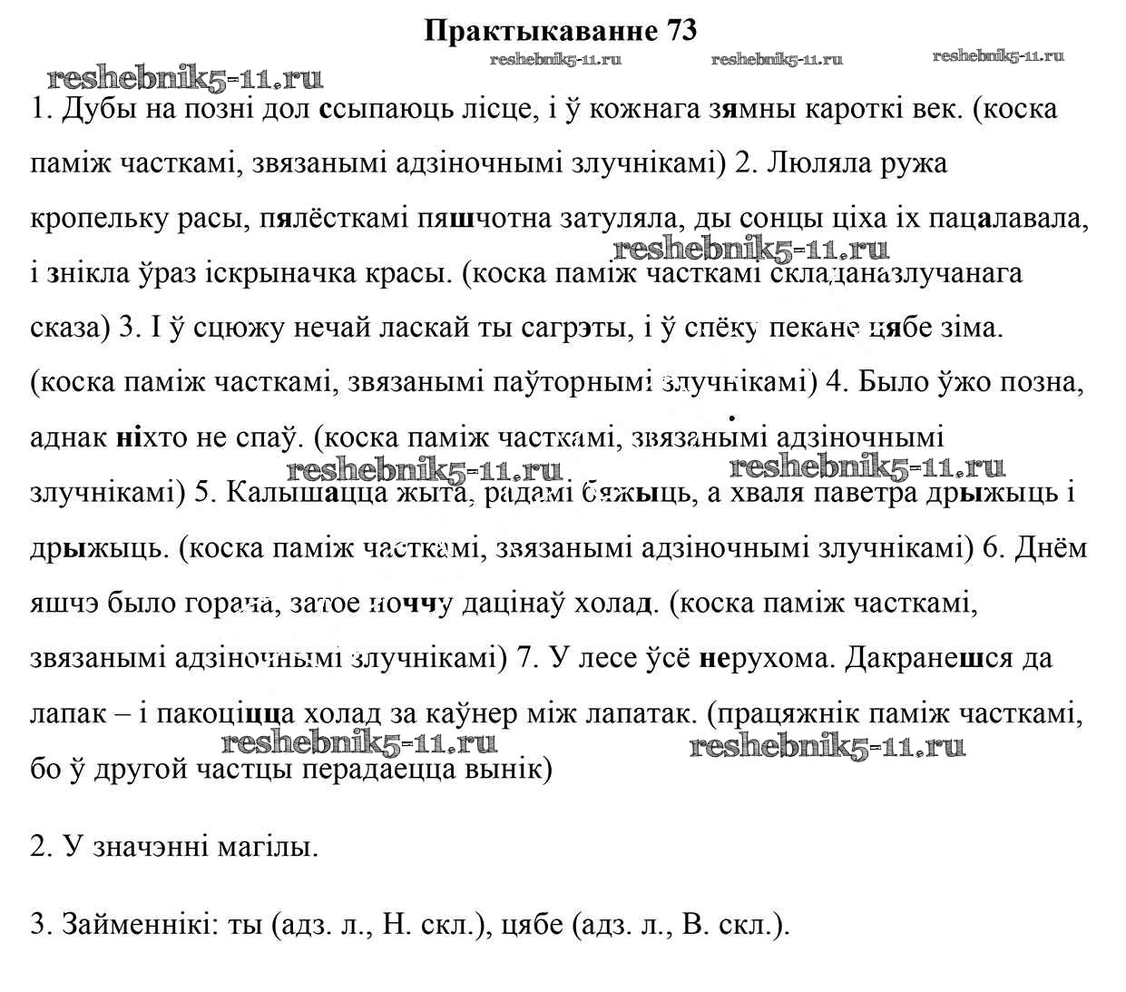 Готовая домашняя работа с ответами по Белорусскому языку за 9 класс Валочка, Васюковіч, Зелянко, Якуба, Байкова Учебник Национальный институт образования 2019 ФГОС - Практыкаванні 73