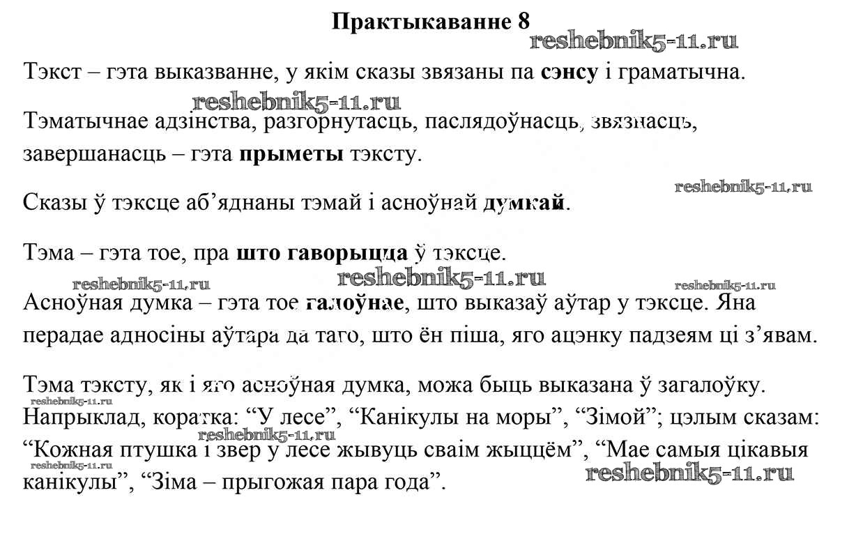 Готовая домашняя работа с ответами по Белорусскому языку за 9 класс Валочка, Васюковіч, Зелянко, Якуба, Байкова Учебник Национальный институт образования 2019 ФГОС - Практыкаванні 8