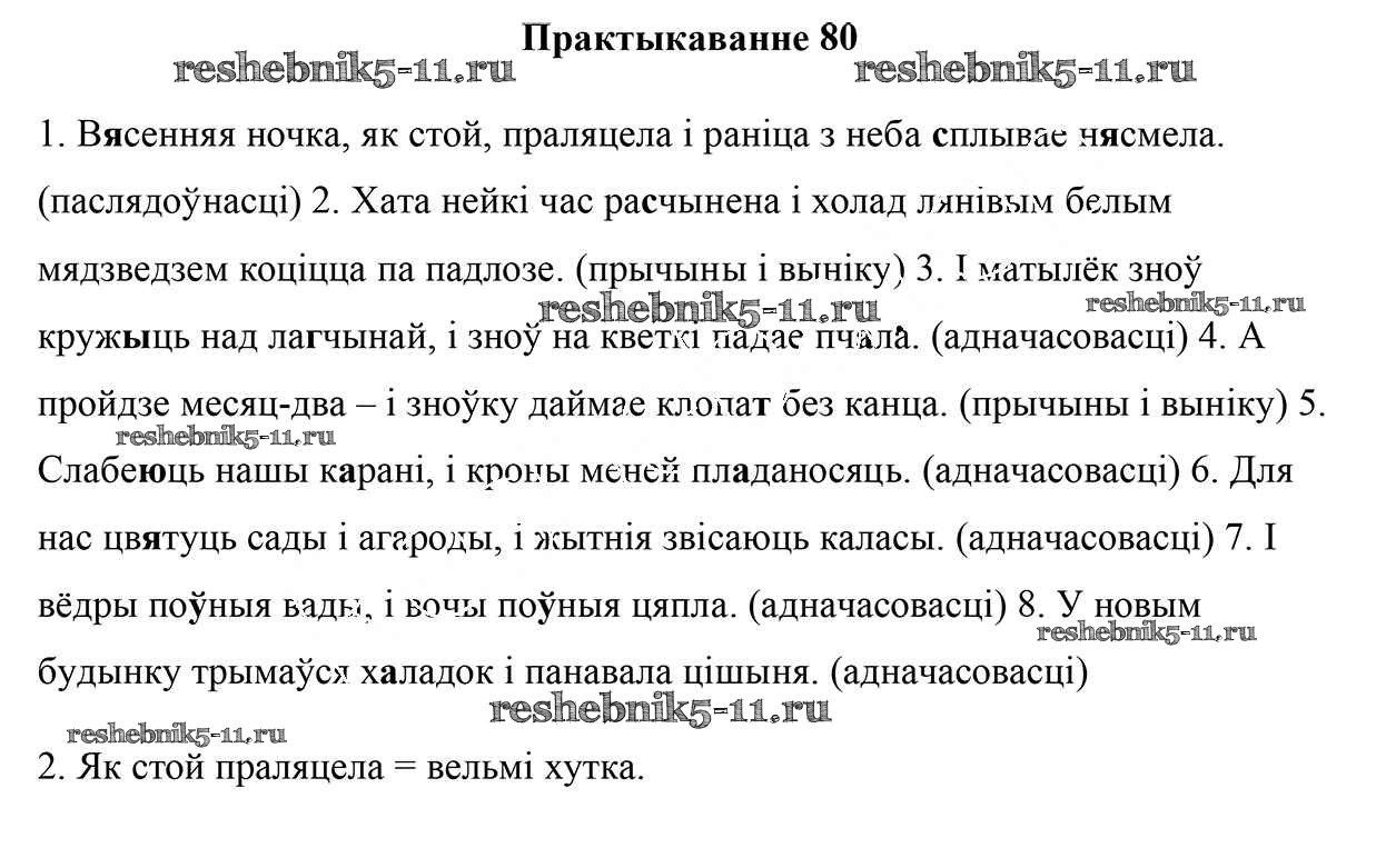 Готовая домашняя работа с ответами по Белорусскому языку за 9 класс Валочка, Васюковіч, Зелянко, Якуба, Байкова Учебник Национальный институт образования 2019 ФГОС - Практыкаванні 80