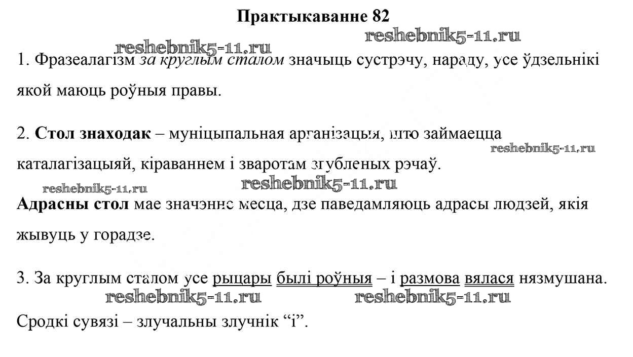 Готовая домашняя работа с ответами по Белорусскому языку за 9 класс Валочка, Васюковіч, Зелянко, Якуба, Байкова Учебник Национальный институт образования 2019 ФГОС - Практыкаванні 82