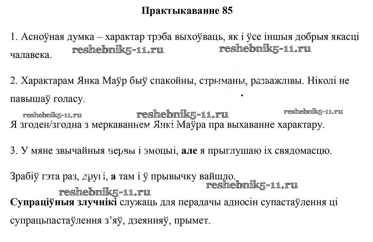 Готовая домашняя работа с ответами по Белорусскому языку за 9 класс Валочка, Васюковіч, Зелянко, Якуба, Байкова Учебник Национальный институт образования 2019 ФГОС - Практыкаванні 85