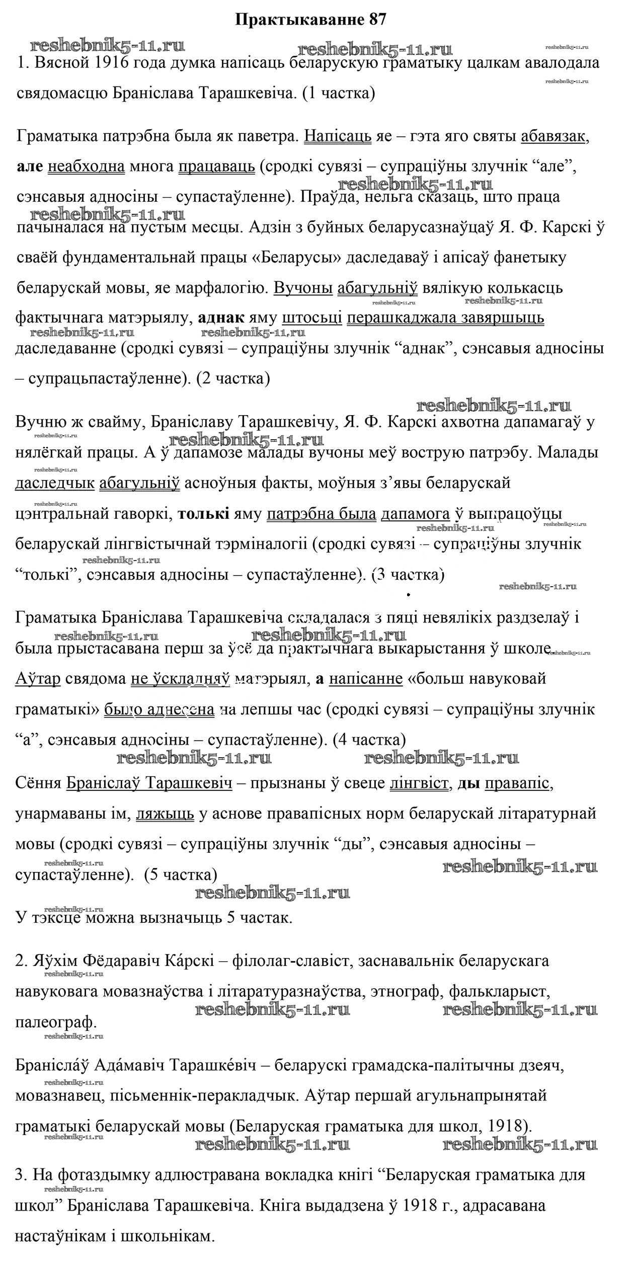 Готовая домашняя работа с ответами по Белорусскому языку за 9 класс Валочка, Васюковіч, Зелянко, Якуба, Байкова Учебник Национальный институт образования 2019 ФГОС - Практыкаванні 87