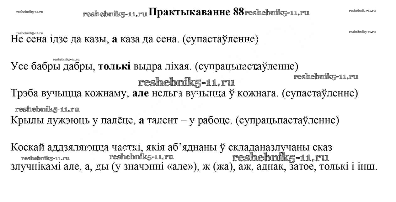 Готовая домашняя работа с ответами по Белорусскому языку за 9 класс Валочка, Васюковіч, Зелянко, Якуба, Байкова Учебник Национальный институт образования 2019 ФГОС - Практыкаванні 88