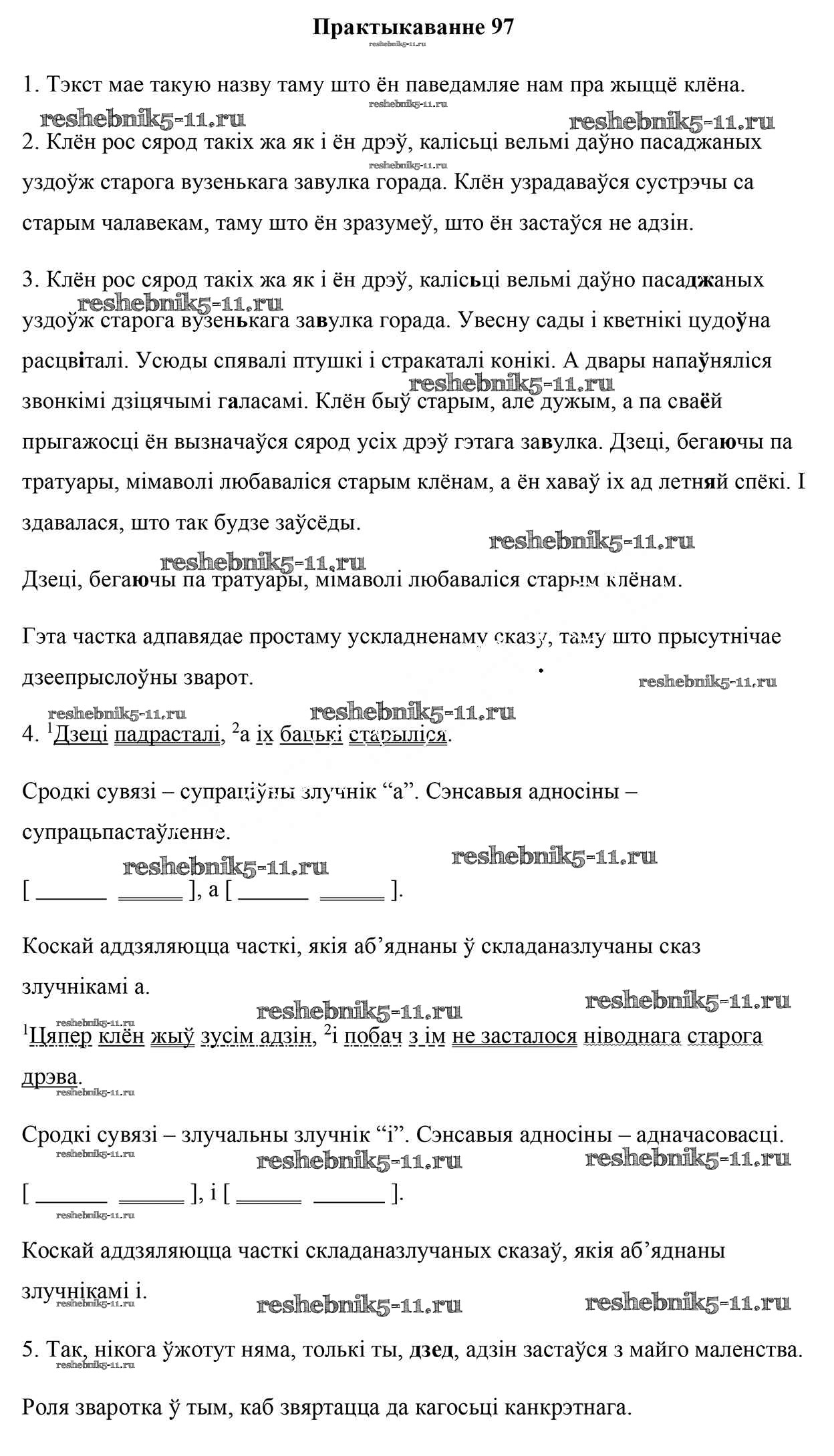 Готовая домашняя работа с ответами по Белорусскому языку за 9 класс Валочка, Васюковіч, Зелянко, Якуба, Байкова Учебник Национальный институт образования 2019 ФГОС - Практыкаванні 97