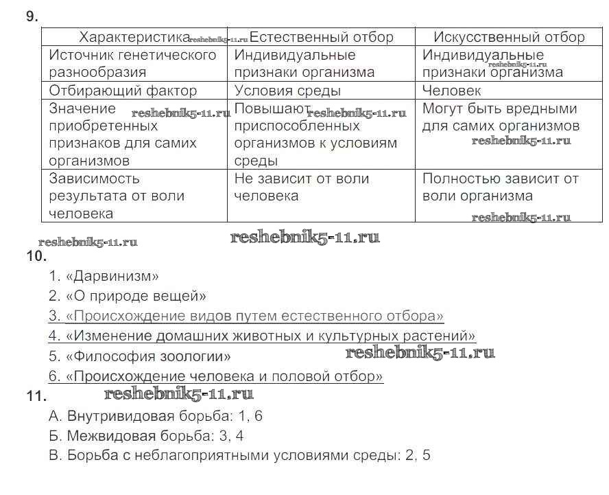 Готовая домашняя работа с ответами по Биологии за 9 класс Цибулевский, Захаров, Сонин Рабочая тетрадь Вертикаль Дрофа 2015 ФГОС - Глава 11. Теория Чарльза Дарвина о происхождении видов путём естественного отбора стр.74