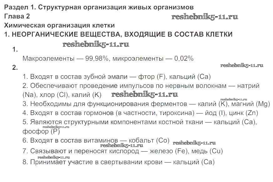 Готовая домашняя работа с ответами по Биологии за 9 класс Цибулевский, Захаров, Сонин Рабочая тетрадь Вертикаль Дрофа 2015 ФГОС - Глава 2. Химическая организация клетки стр.11