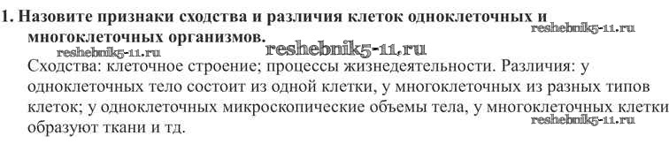 Готовая домашняя работа с ответами по Биологии за 9 класс Пономарева, Корнилова, Чернова Учебник Вентана-граф 2019 ФГОС - §5. Многообразие клеток 1
