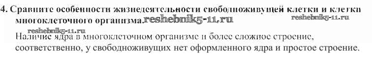 Готовая домашняя работа с ответами по Биологии за 9 класс Пономарева, Корнилова, Чернова Учебник Вентана-граф 2019 ФГОС - §5. Многообразие клеток 4