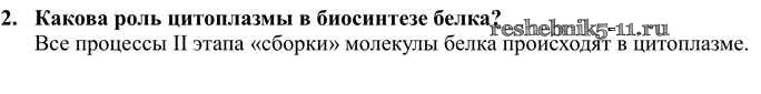 Готовая домашняя работа с ответами по Биологии за 9 класс Пономарева, Корнилова, Чернова Учебник Вентана-граф 2019 ФГОС - §10. Биосинтез белка в клетке 2