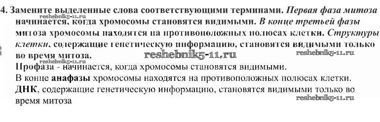 Готовая домашняя работа с ответами по Биологии за 9 класс Пономарева, Корнилова, Чернова Учебник Вентана-граф 2019 ФГОС - §13. Размножение клетки и её жизненный цикл 4