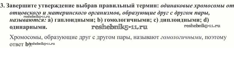 Готовая домашняя работа с ответами по Биологии за 9 класс Пономарева, Корнилова, Чернова Учебник Вентана-граф 2019 ФГОС - §24. Образование половых клеток. Мейоз 3