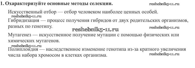 Готовая домашняя работа с ответами по Биологии за 9 класс Пономарева, Корнилова, Чернова Учебник Вентана-граф 2019 ФГОС - §29. Основы селекции организмов 1