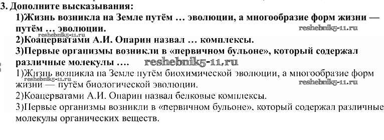 Готовая домашняя работа с ответами по Биологии за 9 класс Пономарева, Корнилова, Чернова Учебник Вентана-граф 2019 ФГОС - §31. Современные представления о возникновении жизни на Земле 3
