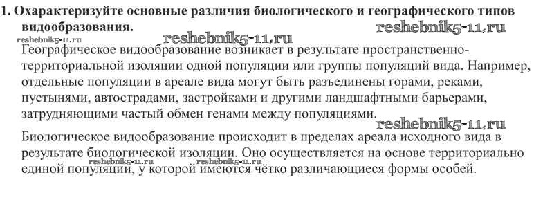 Готовая домашняя работа с ответами по Биологии за 9 класс Пономарева, Корнилова, Чернова Учебник Вентана-граф 2019 ФГОС - §38. Процессы образования видов 1