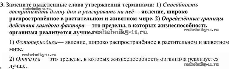 Готовая домашняя работа с ответами по Биологии за 9 класс Пономарева, Корнилова, Чернова Учебник Вентана-граф 2019 ФГОС - §49. Закономерности действия факторов среды на организмы 3