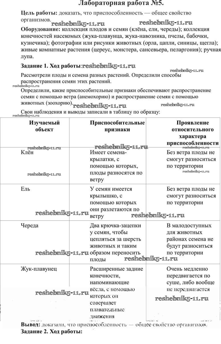Готовая домашняя работа с ответами по Биологии за 9 класс Пономарева, Корнилова, Чернова Учебник Вентана-граф 2019 ФГОС - Лабораторные работы 5
