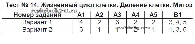 Готовая домашняя работа с ответами по Биологии за 9 класс Богданов Контрольно-измерительные материалы (КИМ) ВАКО 2017 ФГОС - Тесты Тест №14. Жизненный цикл клетки. Деление клетки. Митоз