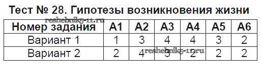 Готовая домашняя работа с ответами по Биологии за 9 класс Богданов Контрольно-измерительные материалы (КИМ) ВАКО 2017 ФГОС - Тесты Тест №28. Гипотезы возникновения жизни