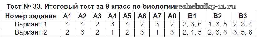 Готовая домашняя работа с ответами по Биологии за 9 класс Богданов Контрольно-измерительные материалы (КИМ) ВАКО 2017 ФГОС - Тесты Тест №33. Итоговый тест за 9 класс по биологии