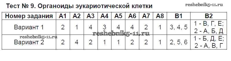 Готовая домашняя работа с ответами по Биологии за 9 класс Богданов Контрольно-измерительные материалы (КИМ) ВАКО 2017 ФГОС - Тесты Тест №9. Органоиды эукариотической клетки