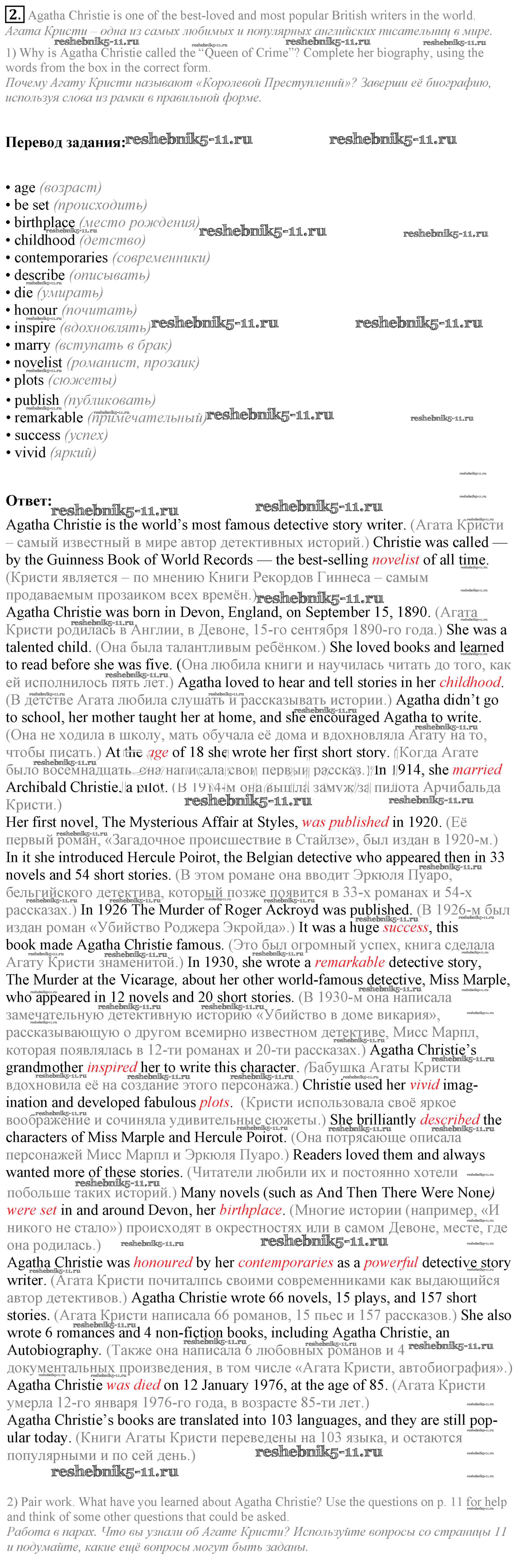 Готовая домашняя работа с ответами по Английскому языку за 9 класс Кузовлев, Лапа, Перегудова Учебник УМК Просвещение 2015 ФГОС - Урок 2 2