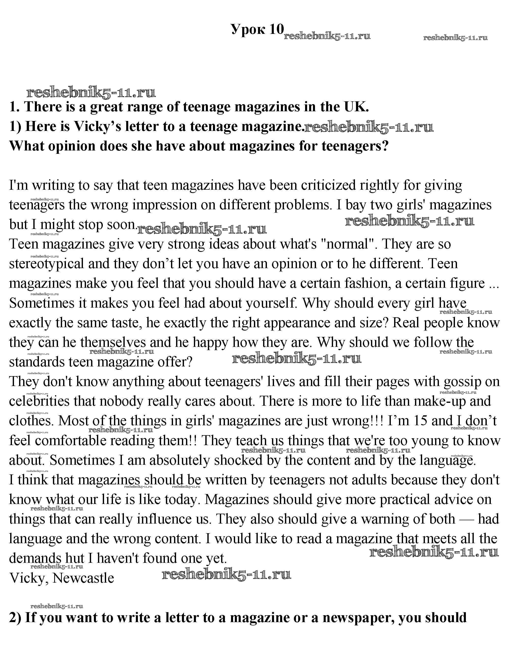 Готовая домашняя работа с ответами по Английскому языку за 9 класс Кузовлев, Лапа, Перегудова Учебник УМК Просвещение 2015 ФГОС - Урок 10 1