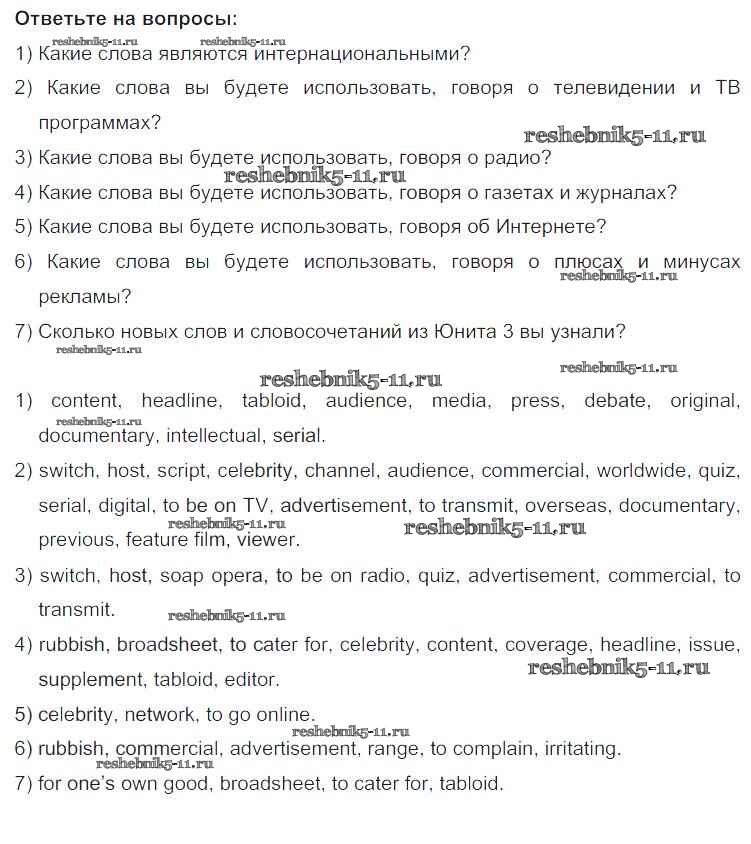 Готовая домашняя работа с ответами по Английскому языку за 9 класс Кузовлев, Лапа, Перегудова Учебник УМК Просвещение 2015 ФГОС - Урок 11 1