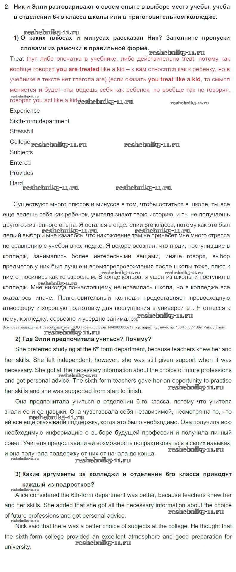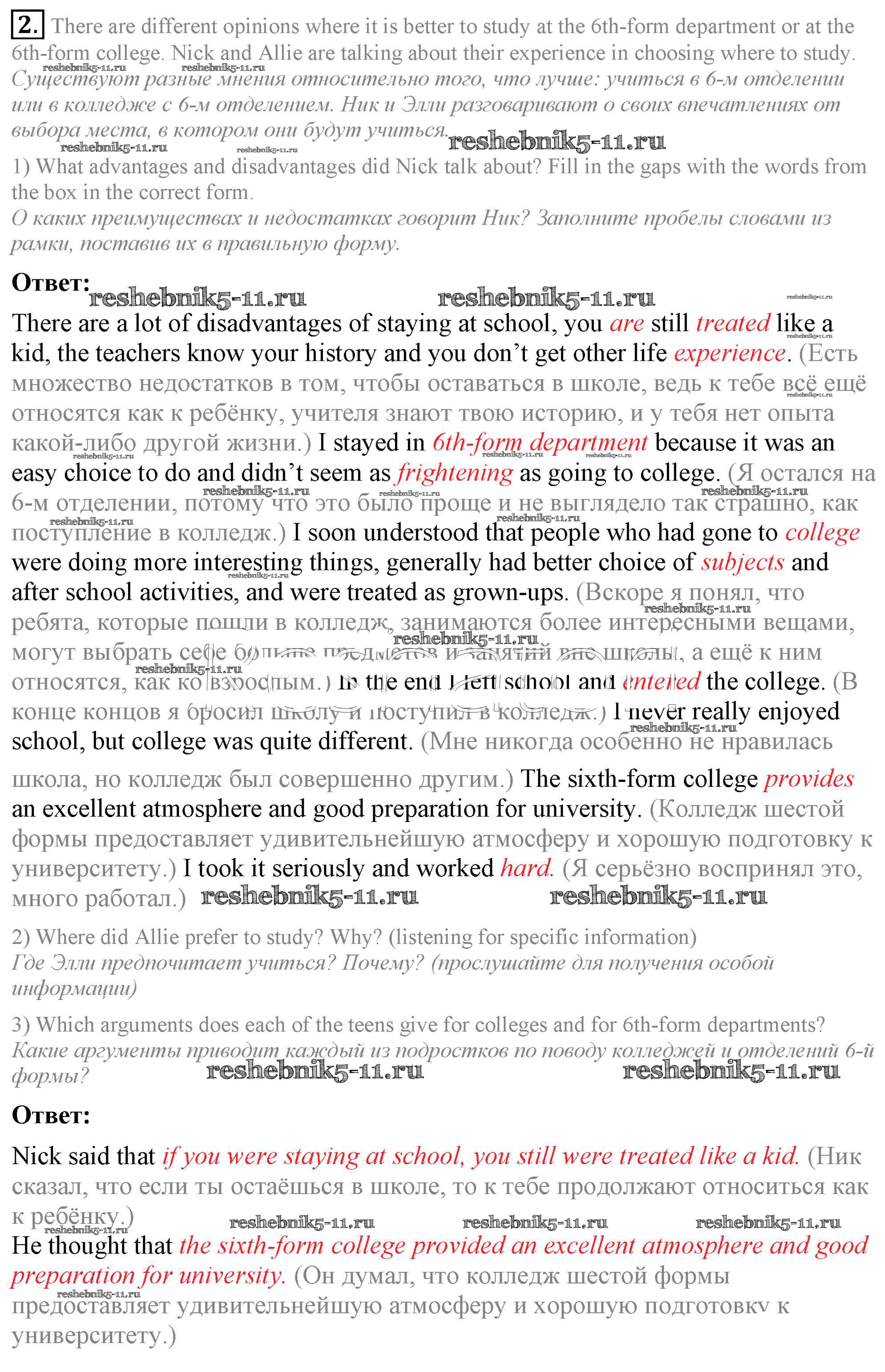 Готовая домашняя работа с ответами по Английскому языку за 9 класс Кузовлев, Лапа, Перегудова Учебник УМК Просвещение 2015 ФГОС - Урок 2 2