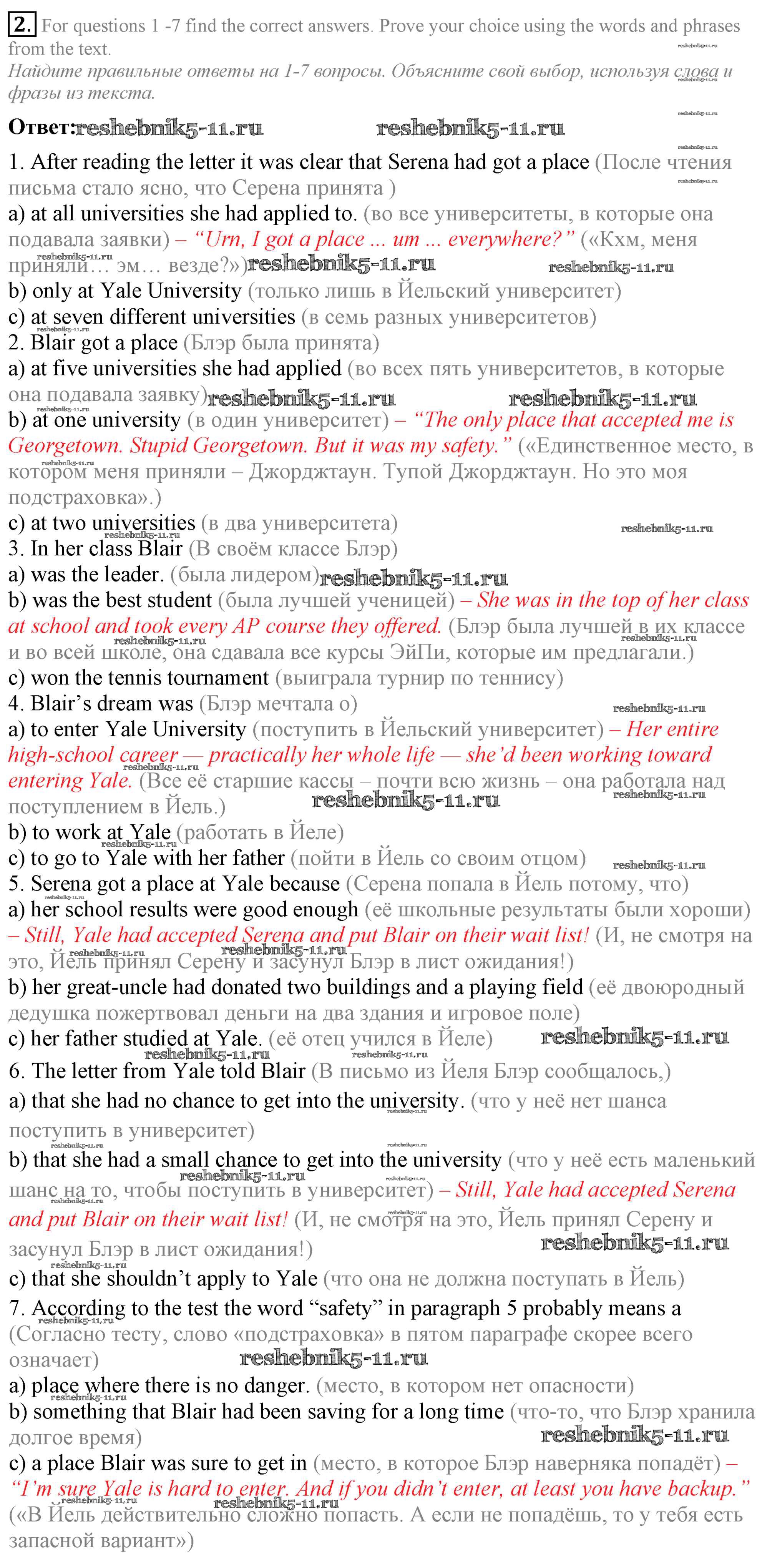 Готовая домашняя работа с ответами по Английскому языку за 9 класс Кузовлев, Лапа, Перегудова Учебник УМК Просвещение 2015 ФГОС - Урок 7 2