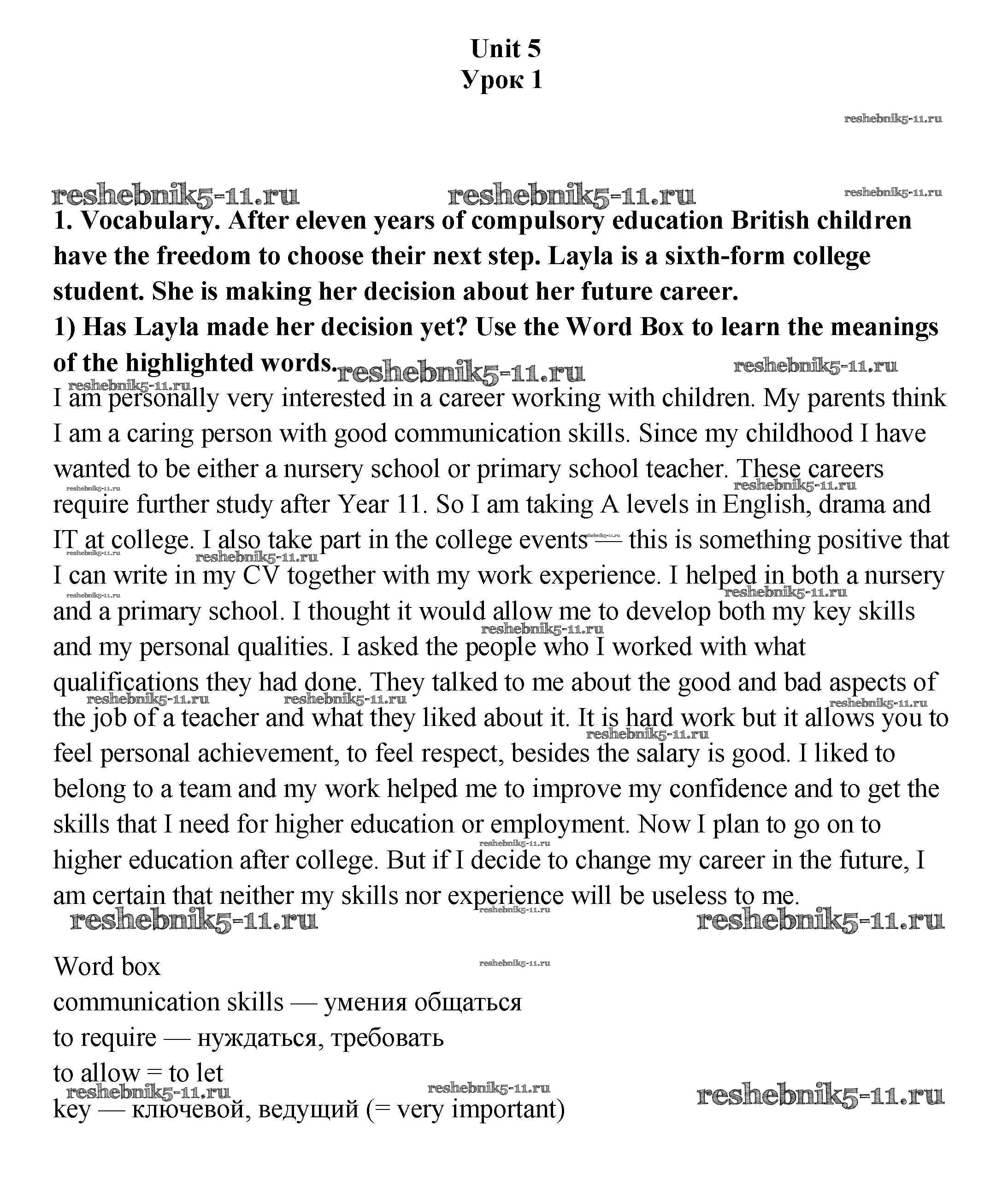 Готовая домашняя работа с ответами по Английскому языку за 9 класс Кузовлев, Лапа, Перегудова Учебник УМК Просвещение 2015 ФГОС - Урок 1 1