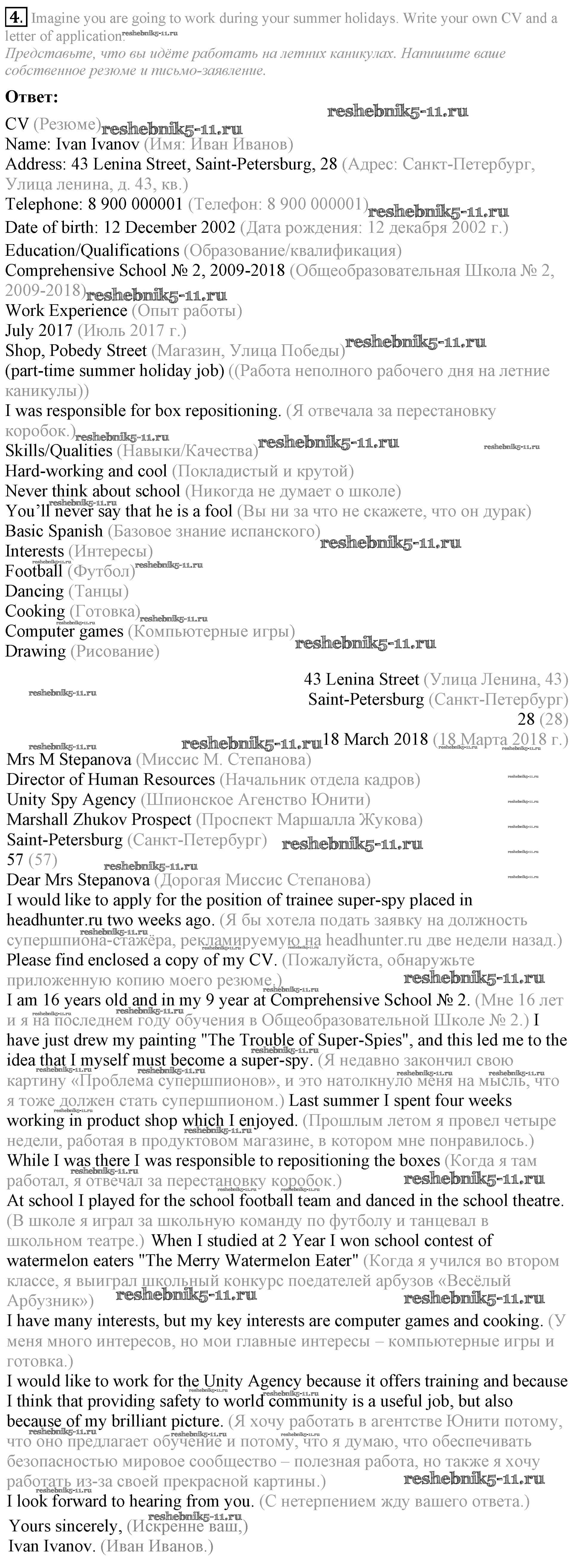 Готовая домашняя работа с ответами по Английскому языку за 9 класс Кузовлев, Лапа, Перегудова Учебник УМК Просвещение 2015 ФГОС - Урок 7 4