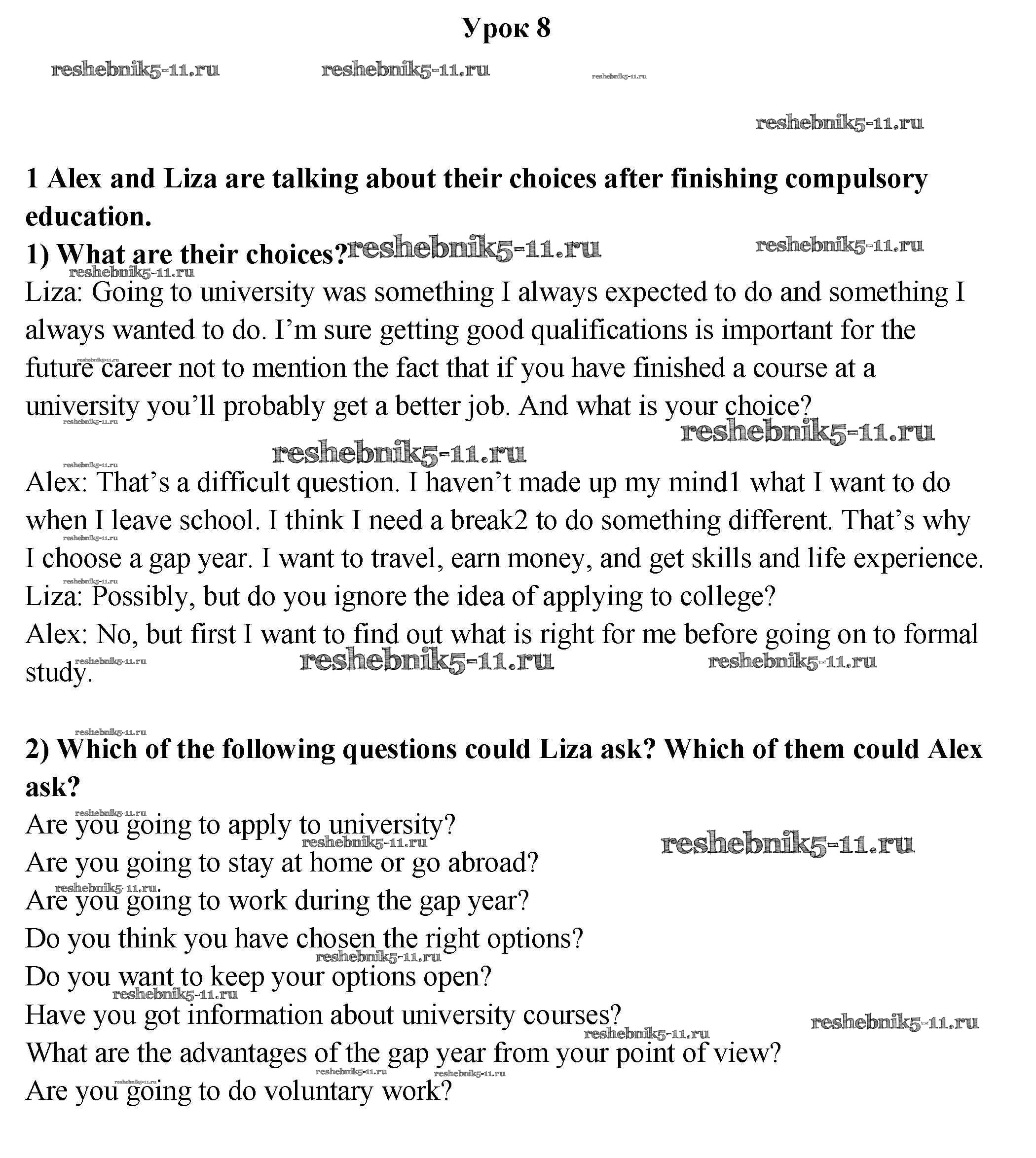 Готовая домашняя работа с ответами по Английскому языку за 9 класс Кузовлев, Лапа, Перегудова Учебник УМК Просвещение 2015 ФГОС - Урок 8 1
