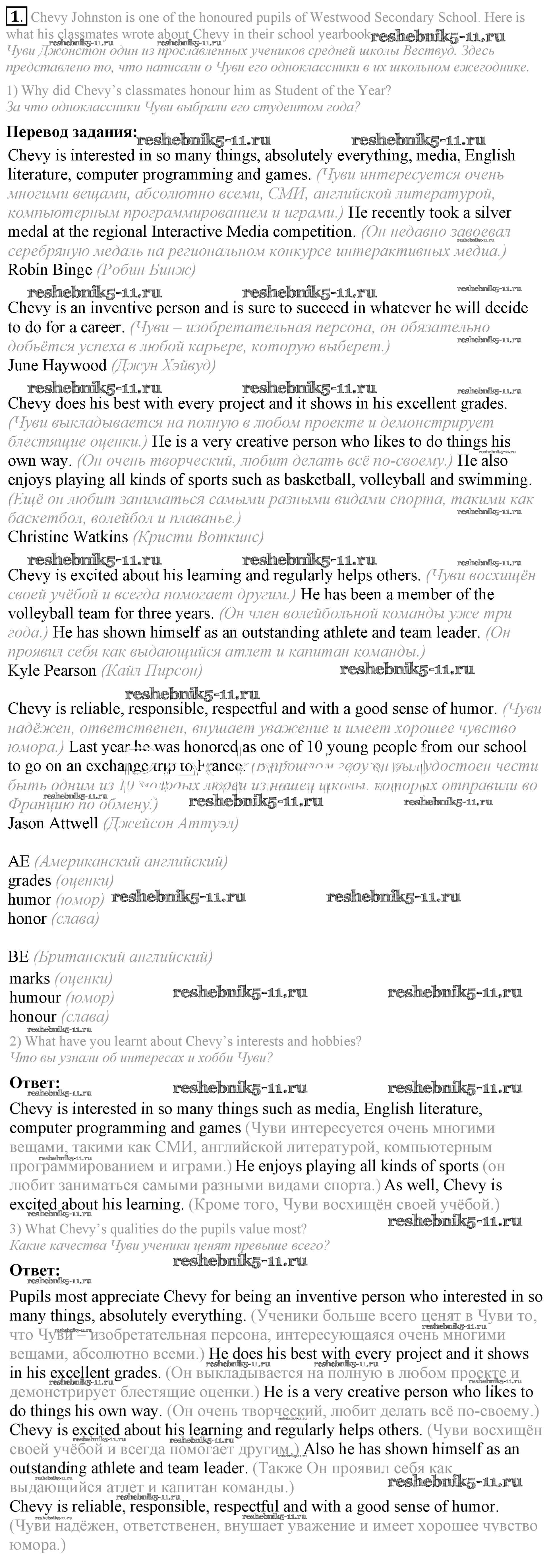 Готовая домашняя работа с ответами по Английскому языку за 9 класс Кузовлев, Лапа, Перегудова Учебник УМК Просвещение 2015 ФГОС - Урок 2 1