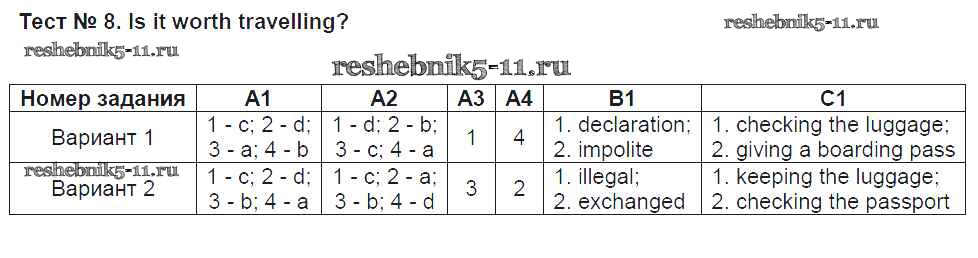 Готовая домашняя работа с ответами по Английскому языку за 9 класс Сахаров Контрольно-измерительные материалы (КИМ) ВАКО 2014 ФГОС - Тесты 8