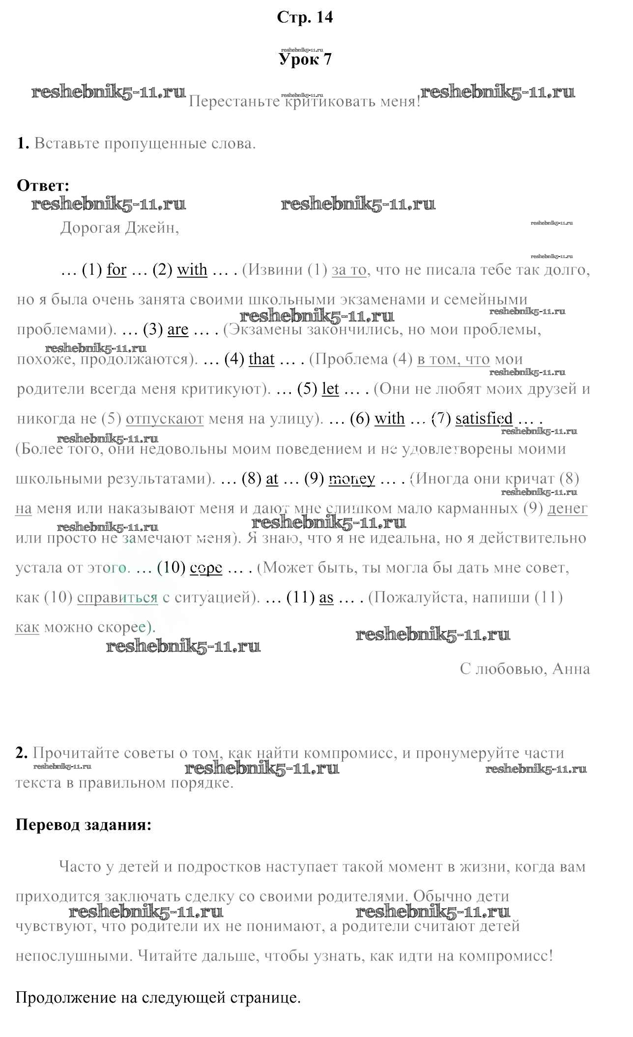 Готовая домашняя работа с ответами по Английскому языку за 9 класс Лапицкая Рабочая тетрадь Часть 1 Аверсэв 2019 ФГОС - Часть 1. Страницы 14
