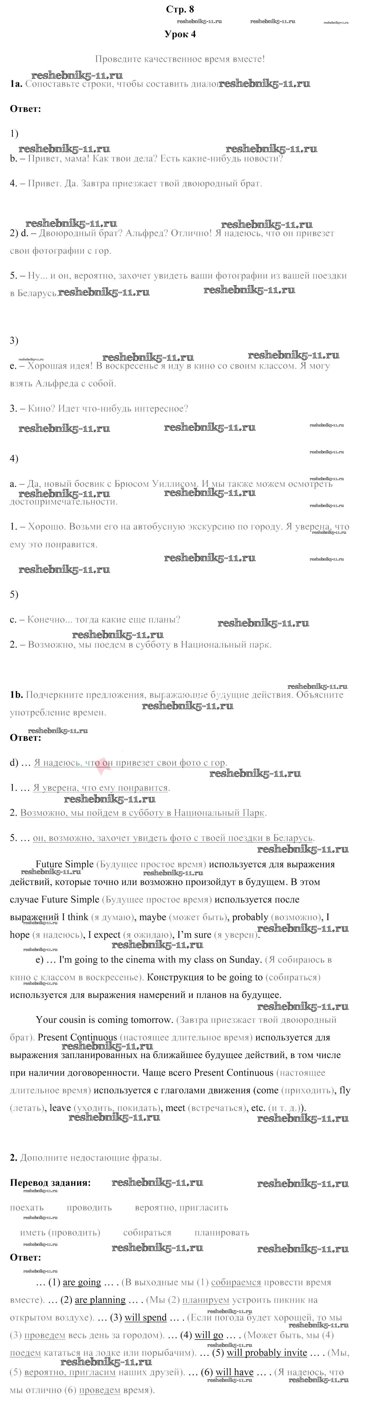Готовая домашняя работа с ответами по Английскому языку за 9 класс Лапицкая Рабочая тетрадь Часть 1 Аверсэв 2019 ФГОС - Часть 1. Страницы 8