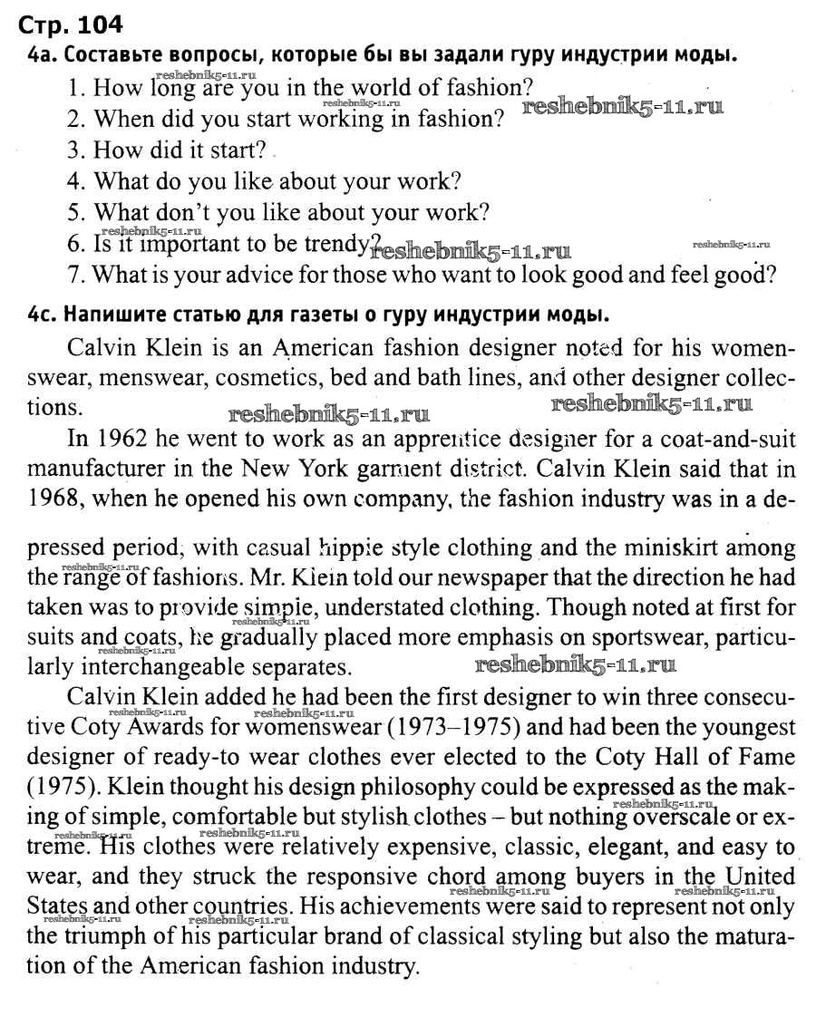Готовая домашняя работа с ответами по Английскому языку за 9 класс Лапицкая, Демченко, Волков Учебник Высшая школа 2018 ФГОС - Страницы 104