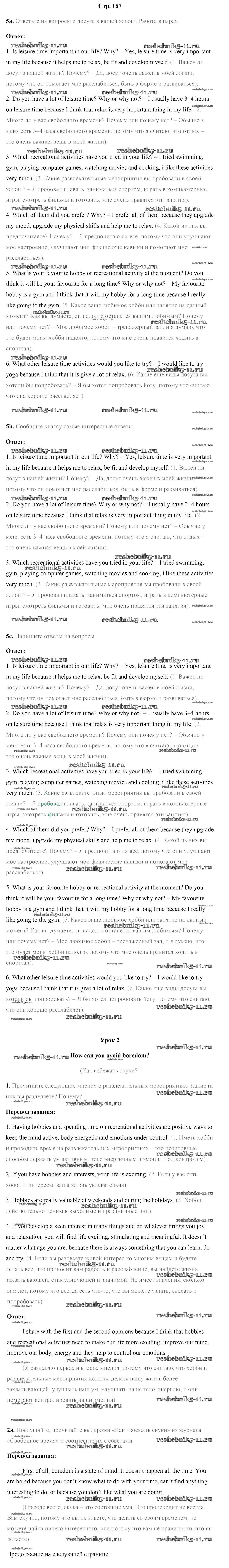 Готовая домашняя работа с ответами по Английскому языку за 9 класс Лапицкая, Демченко, Волков Учебник Высшая школа 2018 ФГОС - Страницы 187