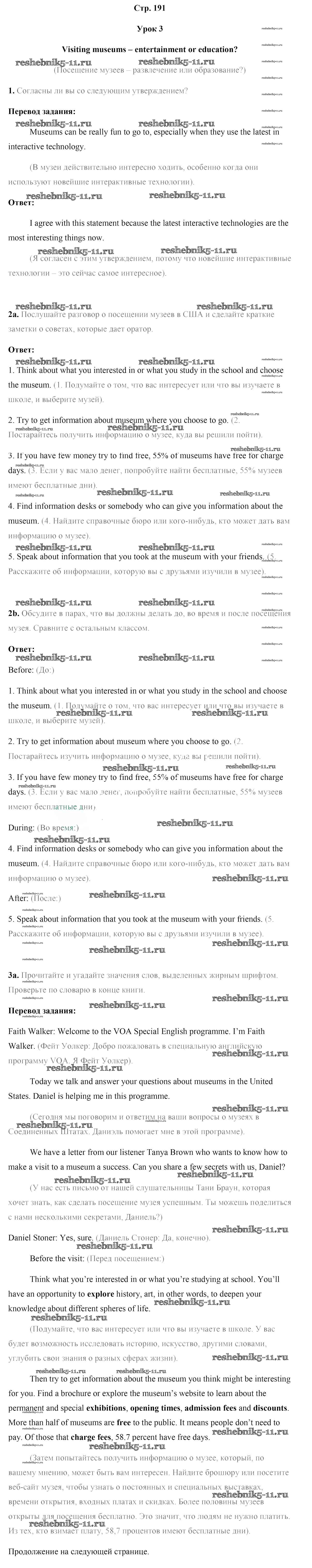 Готовая домашняя работа с ответами по Английскому языку за 9 класс Лапицкая, Демченко, Волков Учебник Высшая школа 2018 ФГОС - Страницы 191